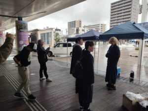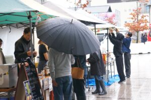 当日の配置変更に加え雨の中の準備、序盤の強風と出店者の方は大変だったと思います。