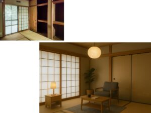 伝統的な和室の静けさを保ちながら、現代的な家具と柔らかい色使いで「快適に暮らせる和室」を演出。