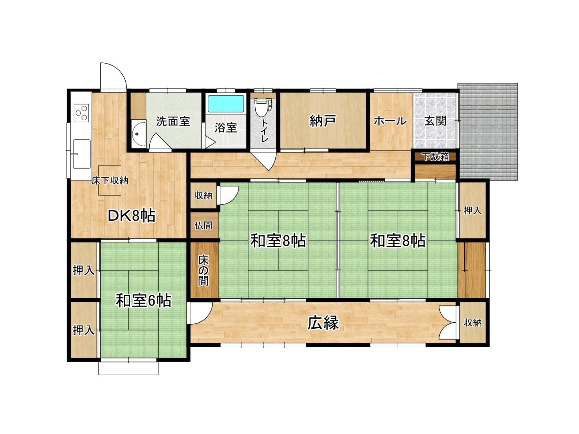 続き間の8畳和室や納戸付きで、ゆったり落ち着いた暮らしが叶います。